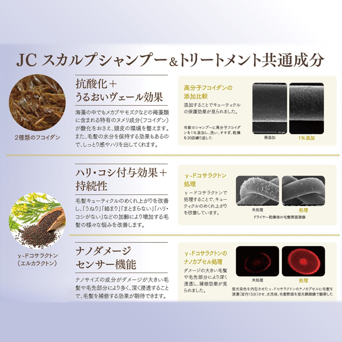 水、加水分解ケラチン、ベヘントリモニウムクロリド、リシン、ローマカミツレ花エキス、ローズマリー葉油、ココイルグルタミン酸TEA、ラノリン脂肪酸、セテスー6、トレオニン、ユズ果実エキス、ラバンデュラハイブリダ油、コカミドDEA、γ-ドコサラクトン、クラドシホンノバエカレドニアエ多糖体、プロリン、セイヨウキズタ葉/茎エキス、オレンジ油、ラウロイルメチルアラニンN a、フィトステロールズ、ベタイン、クララ根エキス、オドリコソウ花エキス、レモン果皮油、ココイルメチルタウリンNa、BG、プロパンジオール、オタネニンジン根エキス、ゴボウ根エキス、セージ油、グリセリン、PCA-Na、セリン、センブリエキス、セイヨウアカマツ球果エキス、レモングラス油、ラウラミドプロピルベタイン、グリチルリチン酸2K、グリシン、オランダガラシ葉/茎エキス、ティーツリー葉油、エチルヘキシルグリセリン、ポリクオタニウムー10、ピロクトンオラミン、グルタミン酸、ニンニク根エキス、ユーカリ葉油、ペンチレングリコール、酢酸トコフェロール 、ソルビトール、アラニン、アルニカ花エキス、セイヨウアカマツ葉油、フェノキシエタノール、クラドシホンノバエカレドニアエエキス、クオタニウムー18、アルギニン、ローズマリー葉エキス、ベルガモット果実油、クエン酸
